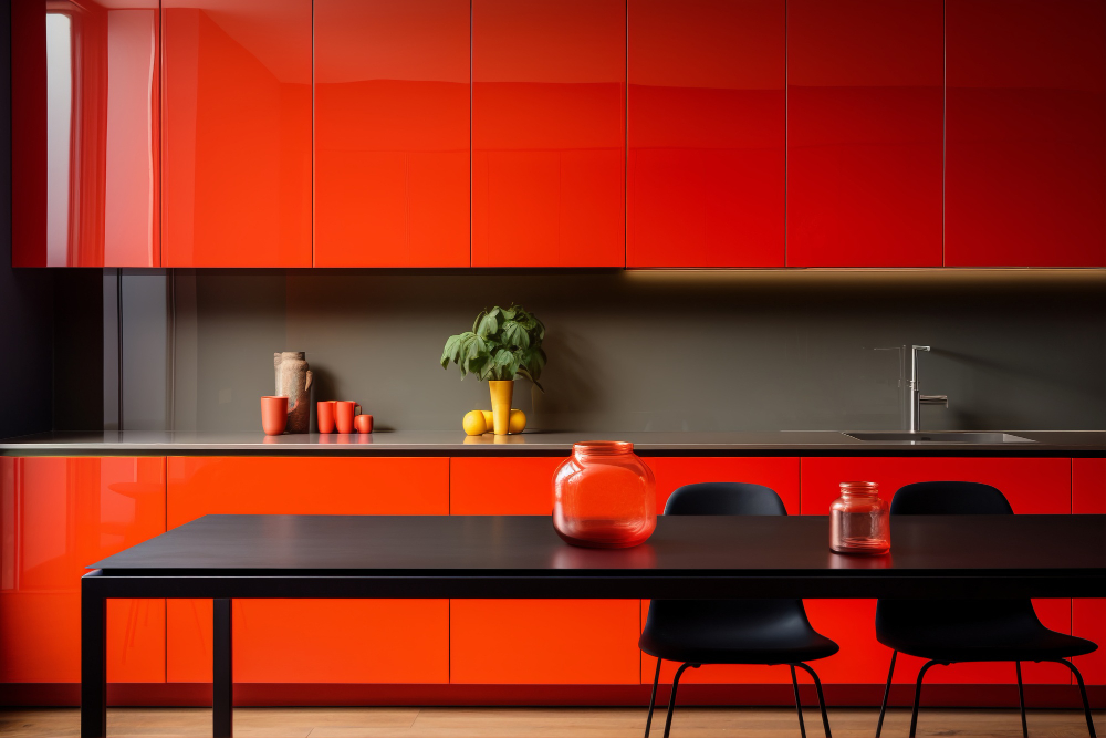Your kitchen feels sleek and organized with the lacquer gloss finish. Choosing this type of glass in light grey or white or other neutral hues accentuates the minimalist look. An open and airy atmosphere is created by this design decision, which is ideal for contemporary kitchen spaces.